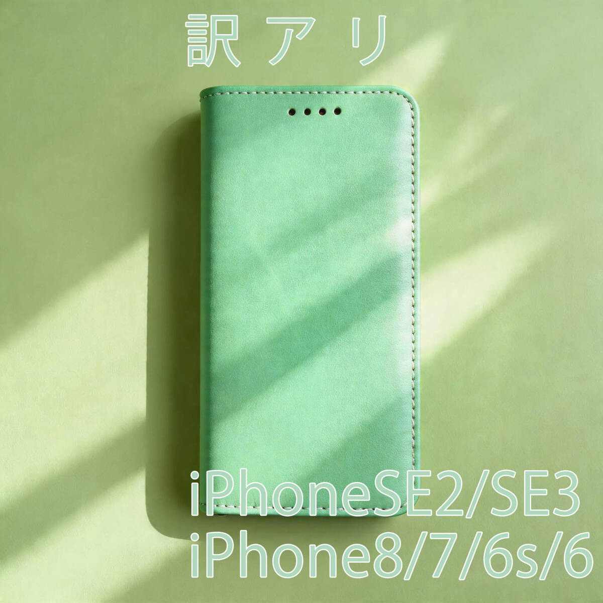- 訳あり iPhoneSE ケース 手帳型 おしゃれ シンプル iPhone8 iPhone7 6s おしゃれ かわいい グリーン 緑色 カバー レザー 人気 革 送料無料