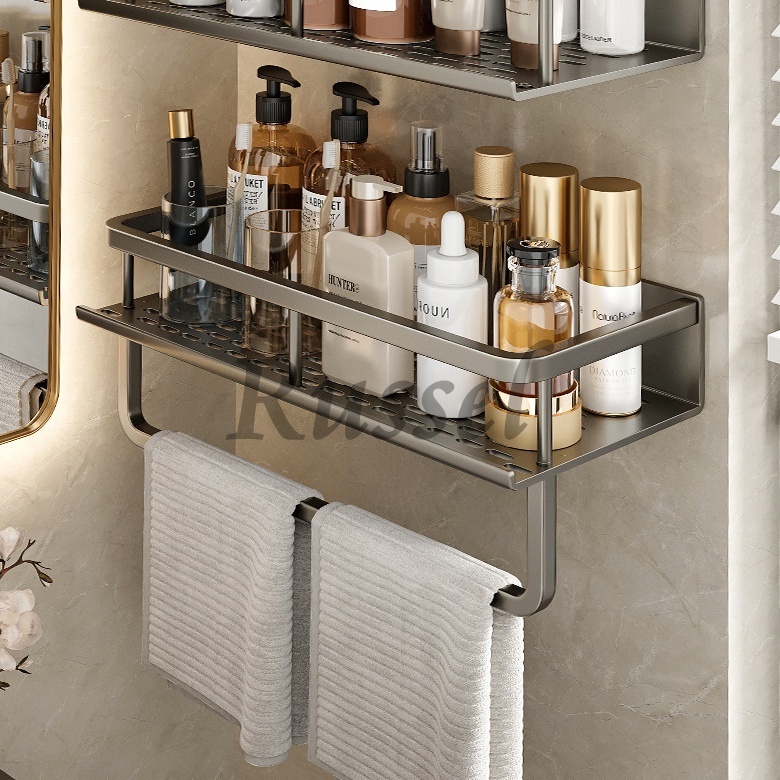 - 浴室ラック 粘着式 タオル掛け付き マルチラック バスルームラック 収納ラック 収納棚 洗面所ラック 浴室 キッチンラック 調味料 ラック