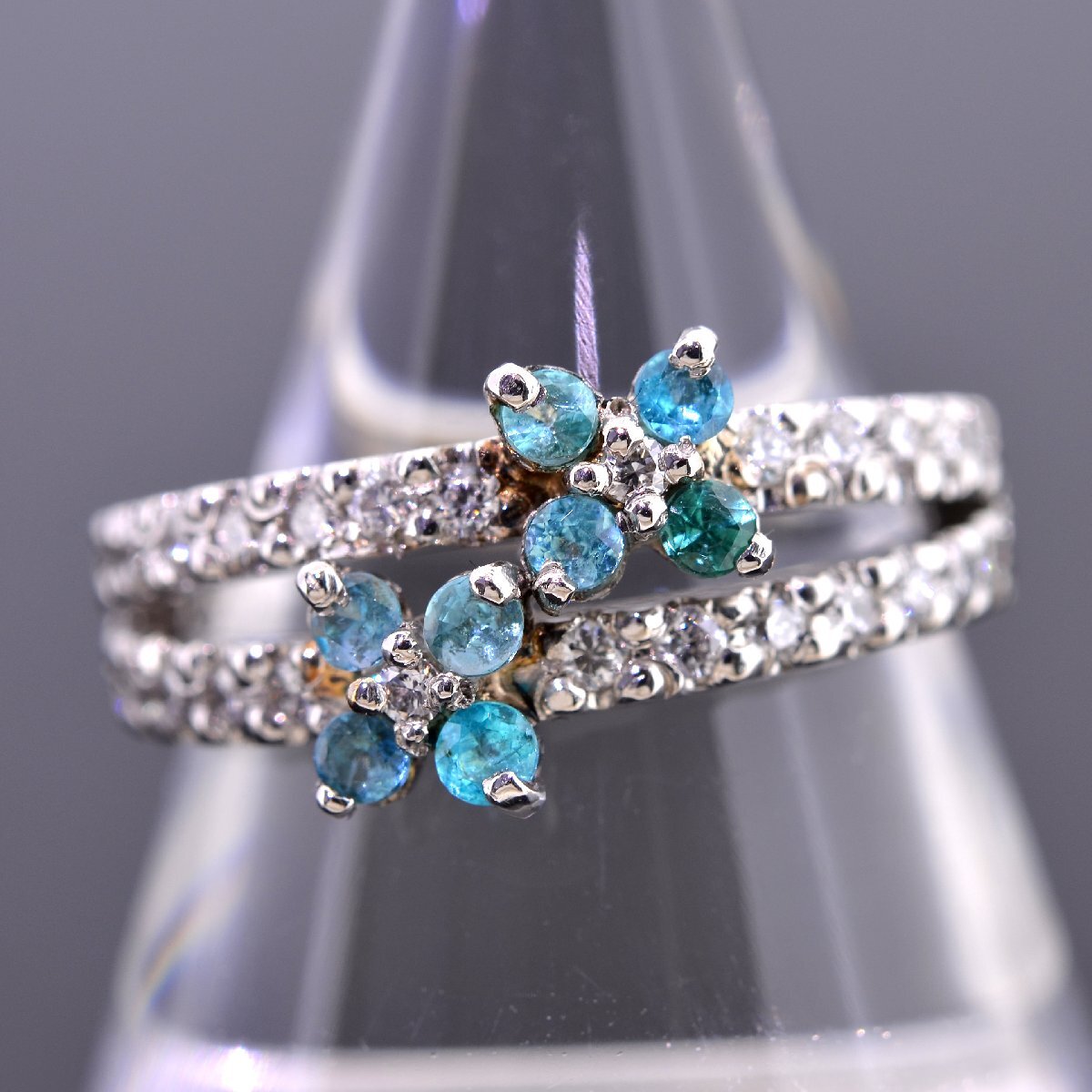 > S2541【BSJJ】Pt900 天然パライバトルマリン0.21ct ダイヤモンド0.23ct リング 9号 指輪 中央宝石研究所 分析報告書 鑑定書付き