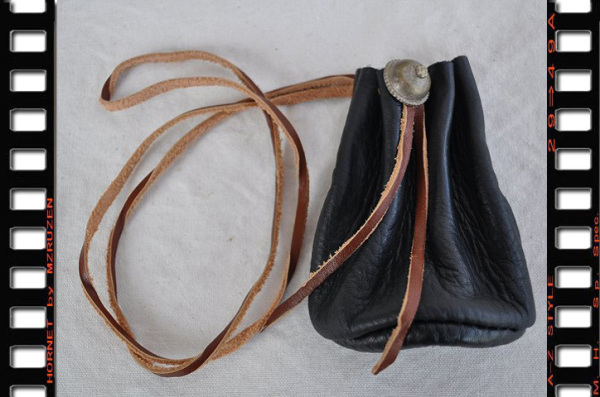 - カウスキン・メディスンポーチ・ブラックサイズM AC新品牛革皺多い古いコンチョ付き