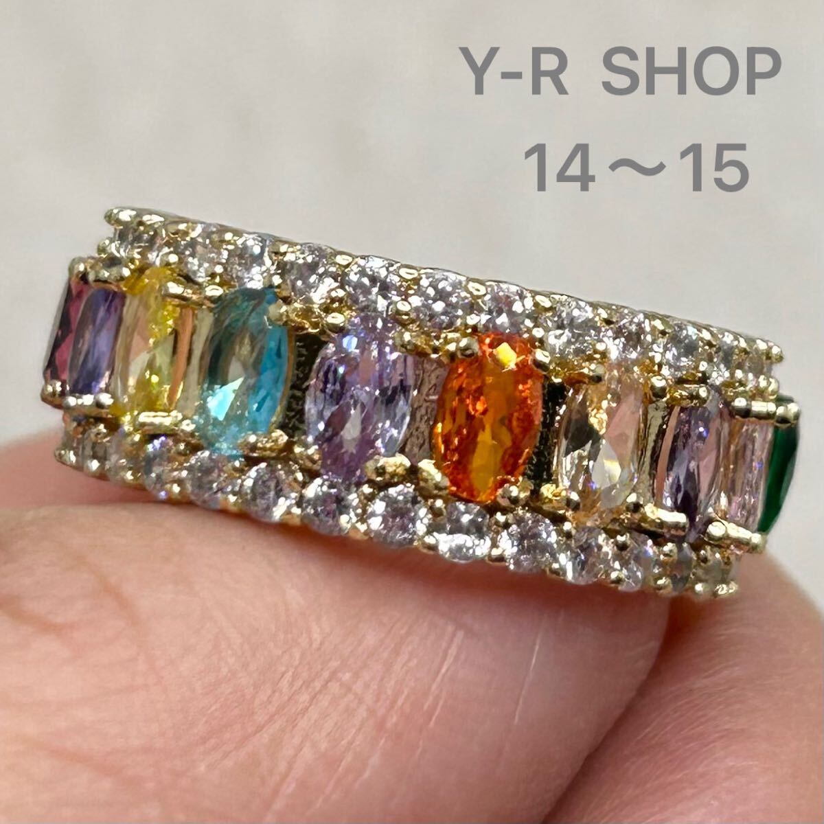 > 14号15号★マルチカラーストーンとホワイトトパーズのゴージャスリング★レディース指輪ゴールドアクセサリーオレンジガーネット 新品Y-R