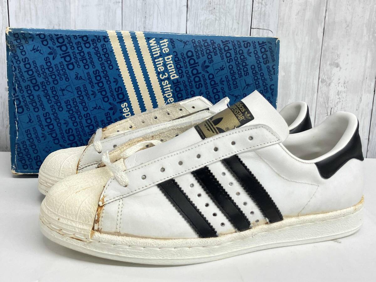- ジャンク adidas スニーカー アディダス SUPER STAR スーパースター 70s 80s フランス製 金ベロ デッドストック AG1018 size9.5