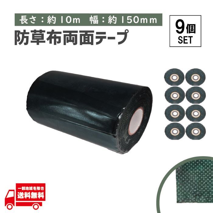- タフテープ ジョイントテープ 強力 粘着 両面 テープ ダブル 10m x 150mm 人工芝 芝生 DIY 雑草対策 防草シート 用 ズレ防止 9個 セット