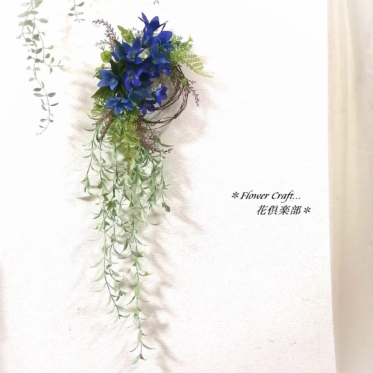 - ◆キキョウと長いリーフのリース◆秋・秋リース 大・インテリア・壁掛け◆造花・ギフト・玄関ドアリース