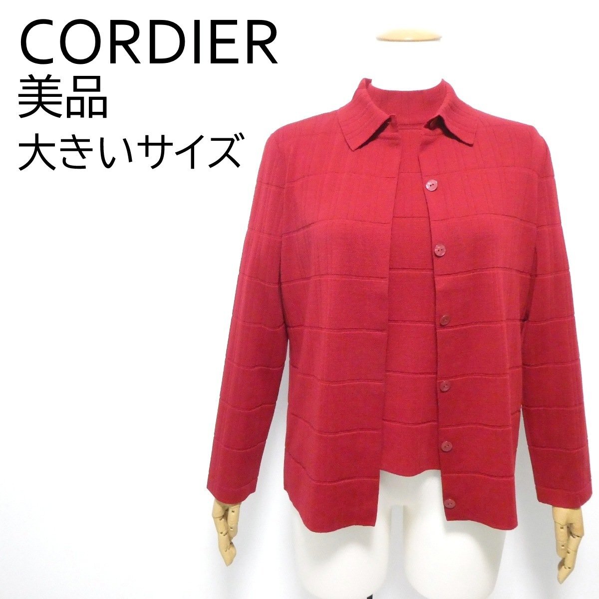 美しいレッドカラーのアンサンブルニットです。