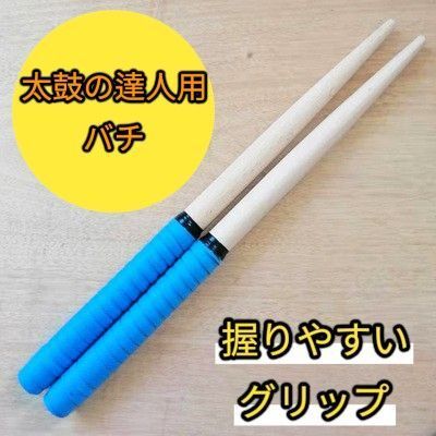 - 太鼓の達人用 木製バチ 39cm×2cm 2本セット 自宅練習やアーケード練習に最適 滑り止めブルーグリップ付木製 太鼓の達人バチ