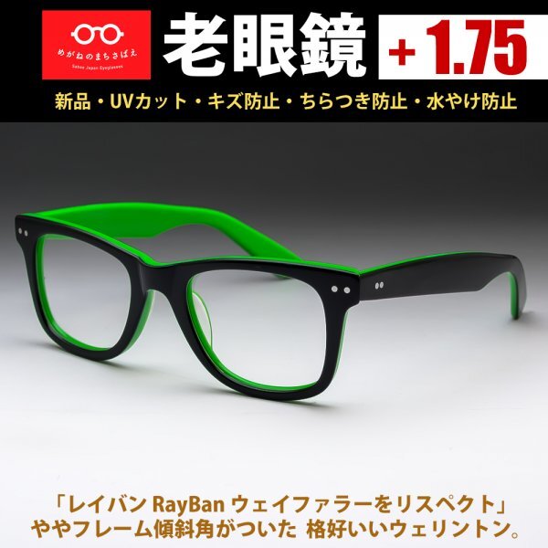 > 老眼鏡 +1.75 鯖江メガネ ウェリントン ウェイファラー仕様 視力補正 薄型レンズ付き シニアグラス 読書用メガネ 度付き可 AK101新品
