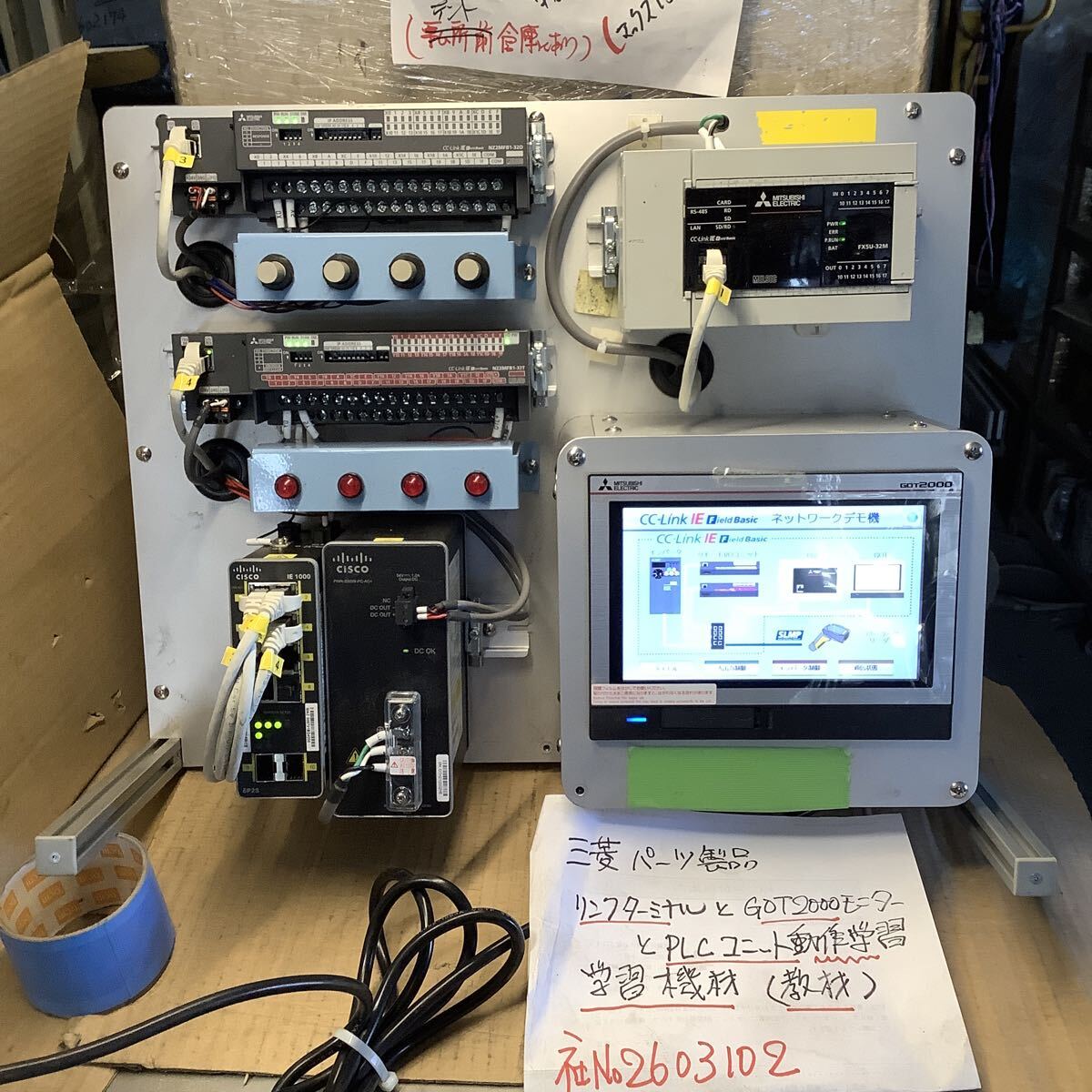 - 三菱電機電子パーツ構成】リンクターミナルと【GOT2000モニターFX5U(PLC)】の動作学習機材(学校の教材物)中古品一般通電まで済みです。