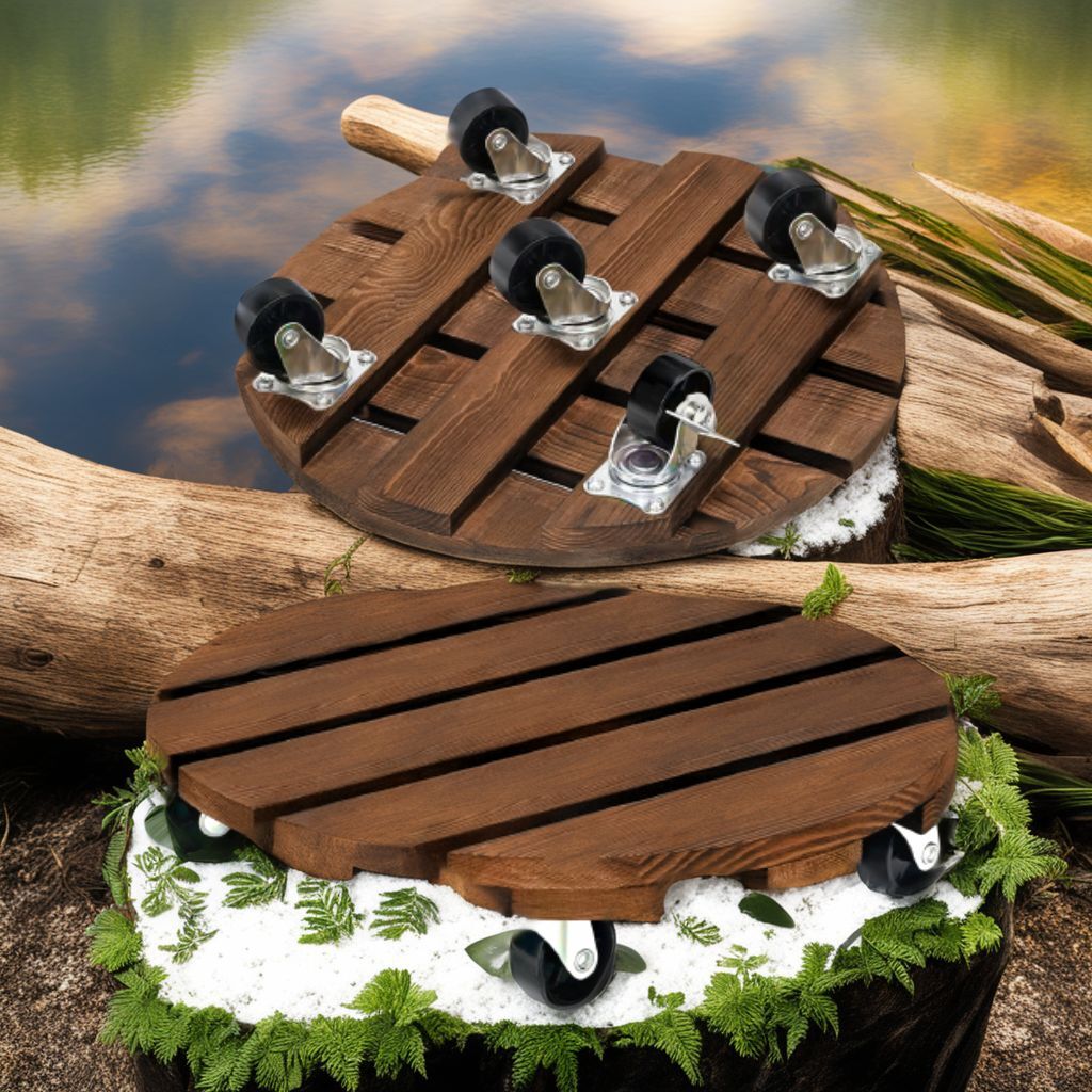 - 植木鉢スタンド ウッド調 移動しやすい キャスター付き