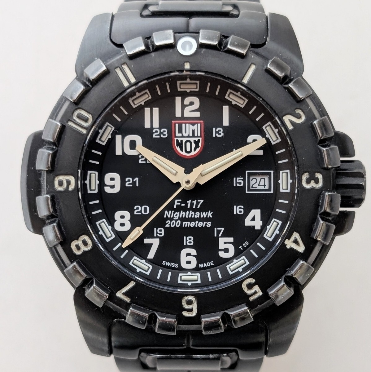 - LUMINOX F-117 NIGHTHAWK series 6400-200 ルミノックス クオーツ ナイトホーク ブラック 6400-2000 デイト メンズ腕時計 稼働品
