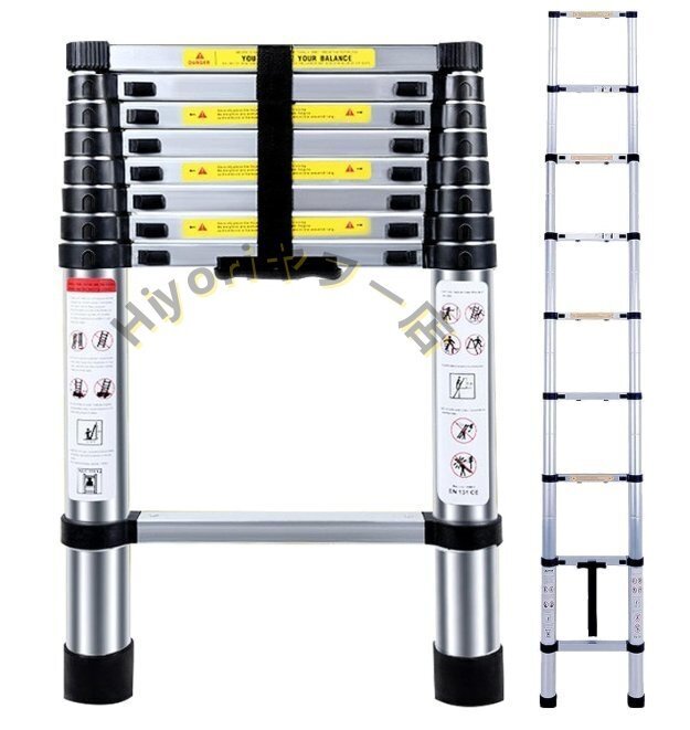 - 多機能 伸縮はしご 最長2.0m 折り畳み伸縮梯子 アルミはしご 持ち運びに便利 軽量 室内室外両用 耐荷重150kg