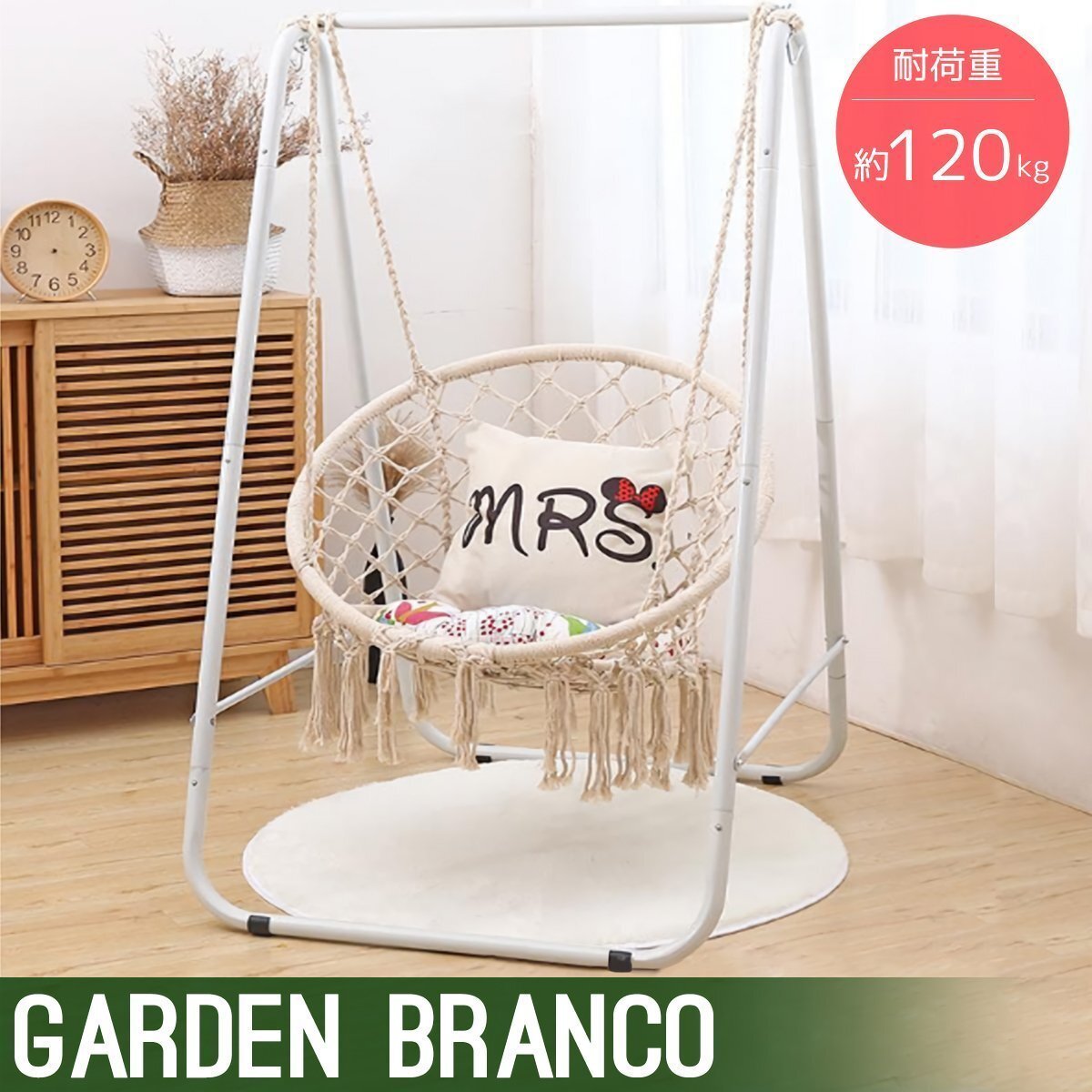 - ハンモックチェア 子供 ガーデンブランコ ハンギングチェアスタンド アウトドア 部屋遊び インテリア 室内 ベランダ 遊具 HC-04WH 白