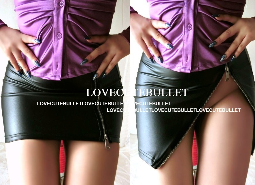 - 光沢ブラック魅惑もも魅せZIP付き美タイトフィットsexyマイクロミニスカート