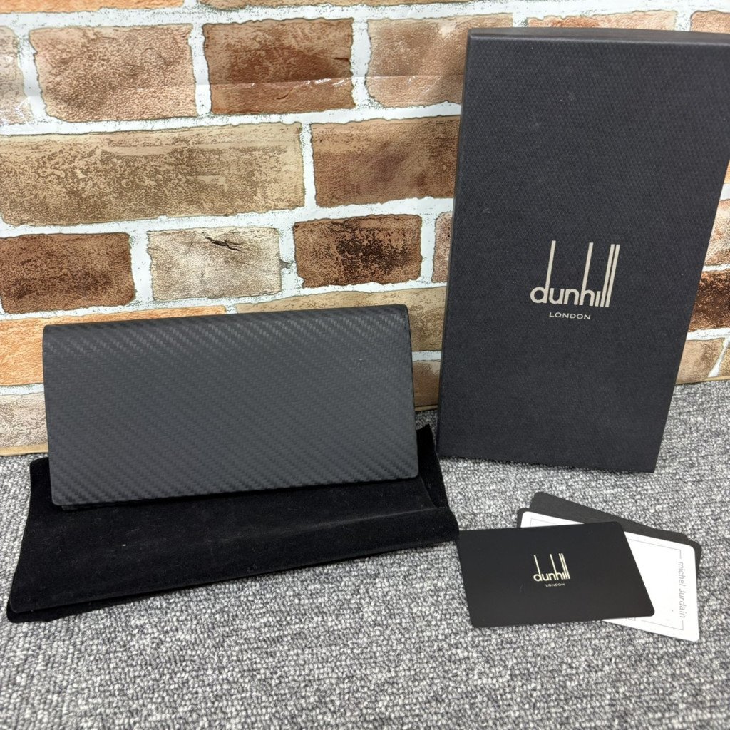 > ●1円~●dunhill ダンヒル Chassis シャーシ カーボン加工レザー 長財布 保存箱・カード付 HS233496