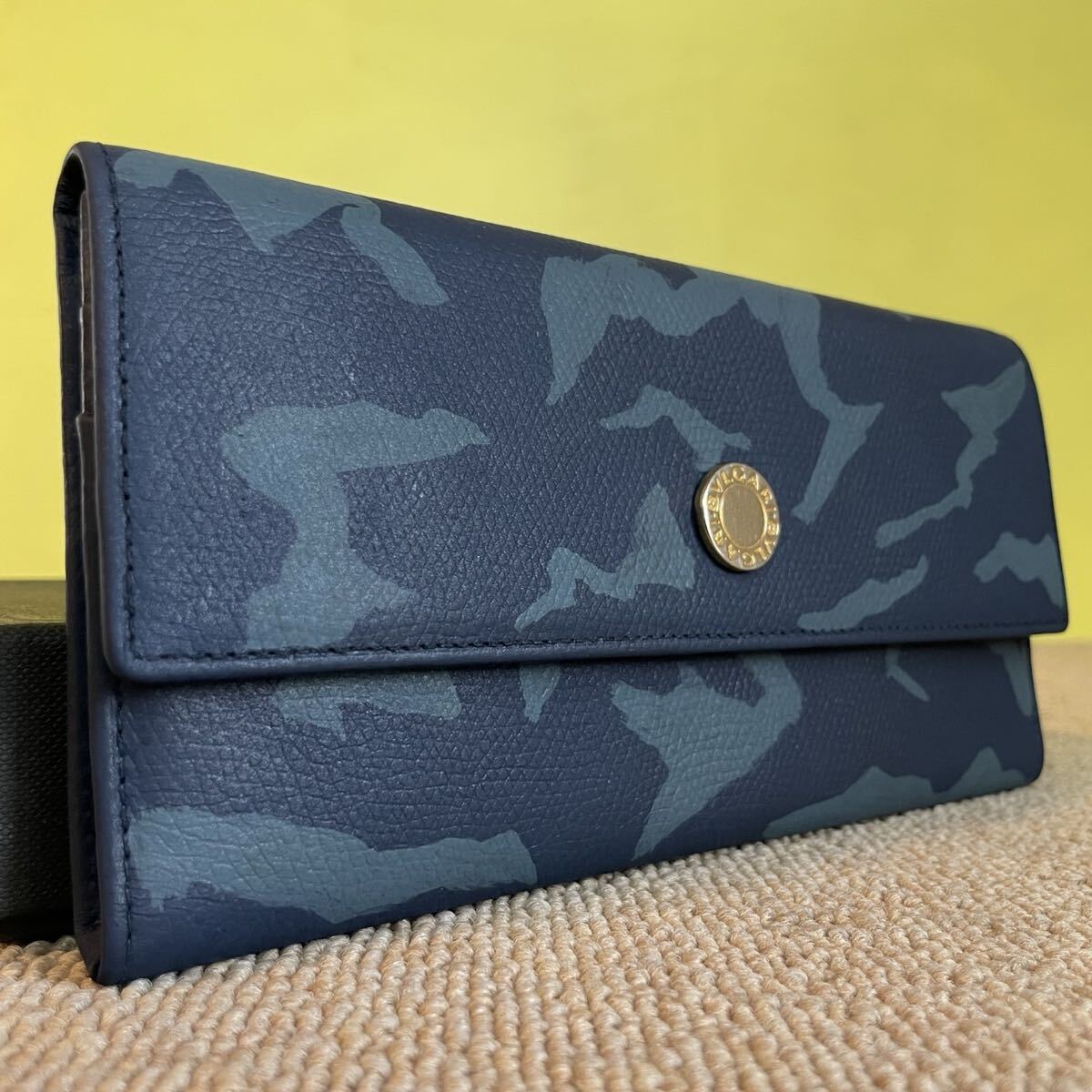- 一円 美品 BVLGARI ブルガリ レアモデル ロングウォレット 長財布 ウォレット 財布 二つ折り カモフラ柄 バイカラー 箱付き