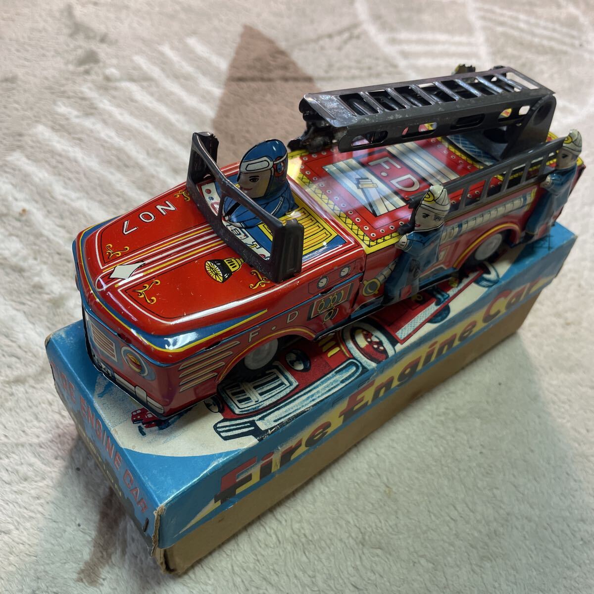 - デッドストック ファイアーエンジンカー 消防車 ブリキ 当時物 ビンテージ フリクション はしご車 昭和レトロ 日本製 レスキュー