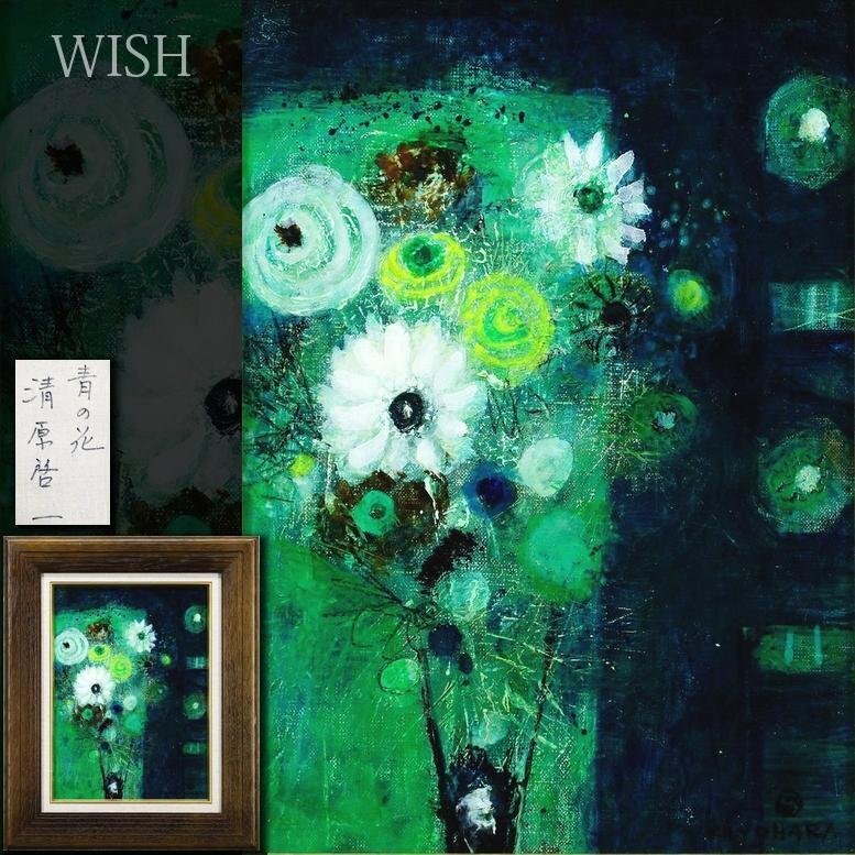 - 【真作】【WISH】清原啓一「青の花」油彩 4号 ◆深い青に咲く幻想の花 〇日本芸術院会員 日展顧問 鶏の画家 物故巨匠 #26032928