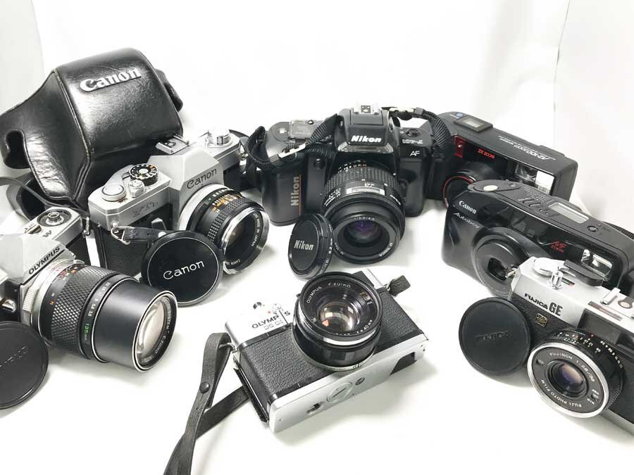 > ◆7台おまとめ 一眼レフ フイルムカメラ FUJICA GE・Nikon F-401 /Canon FTb QL・Autoboy・OLYMPUS AZ-100 zoom・35 DC・ M-1 ジャンク 3-2