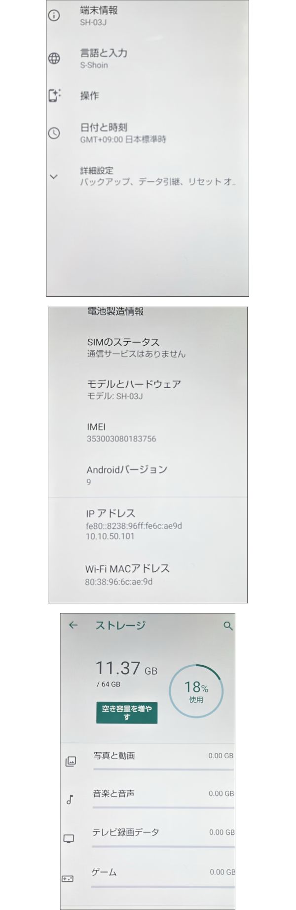 - 2603M4218 SHARP シャープ AQUOS R SH-03J 64GB IMEI docomo:〇判定 SIMロック有 通電確認済