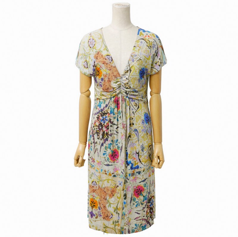 > GT0071#イタリア製*エトロ/ETRO*Vネックワンピース*総柄*花柄*フレンチスリーブ*マルチカラー*サイズ3