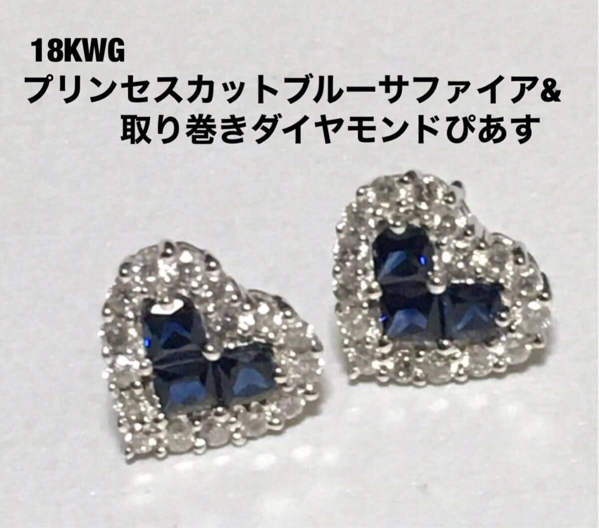- 18KWGプリンセスカットブルーサファイア&取り巻きダイヤモンドぴあす