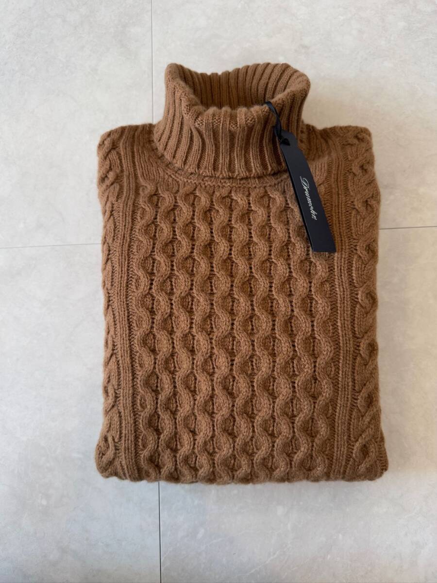 > 5736】新品6.8万【DRUMOHR / ドルモア 50 秋冬モデル ミドルゲージケーブル編 洗い加工 定番タートルネックニット】キャメル