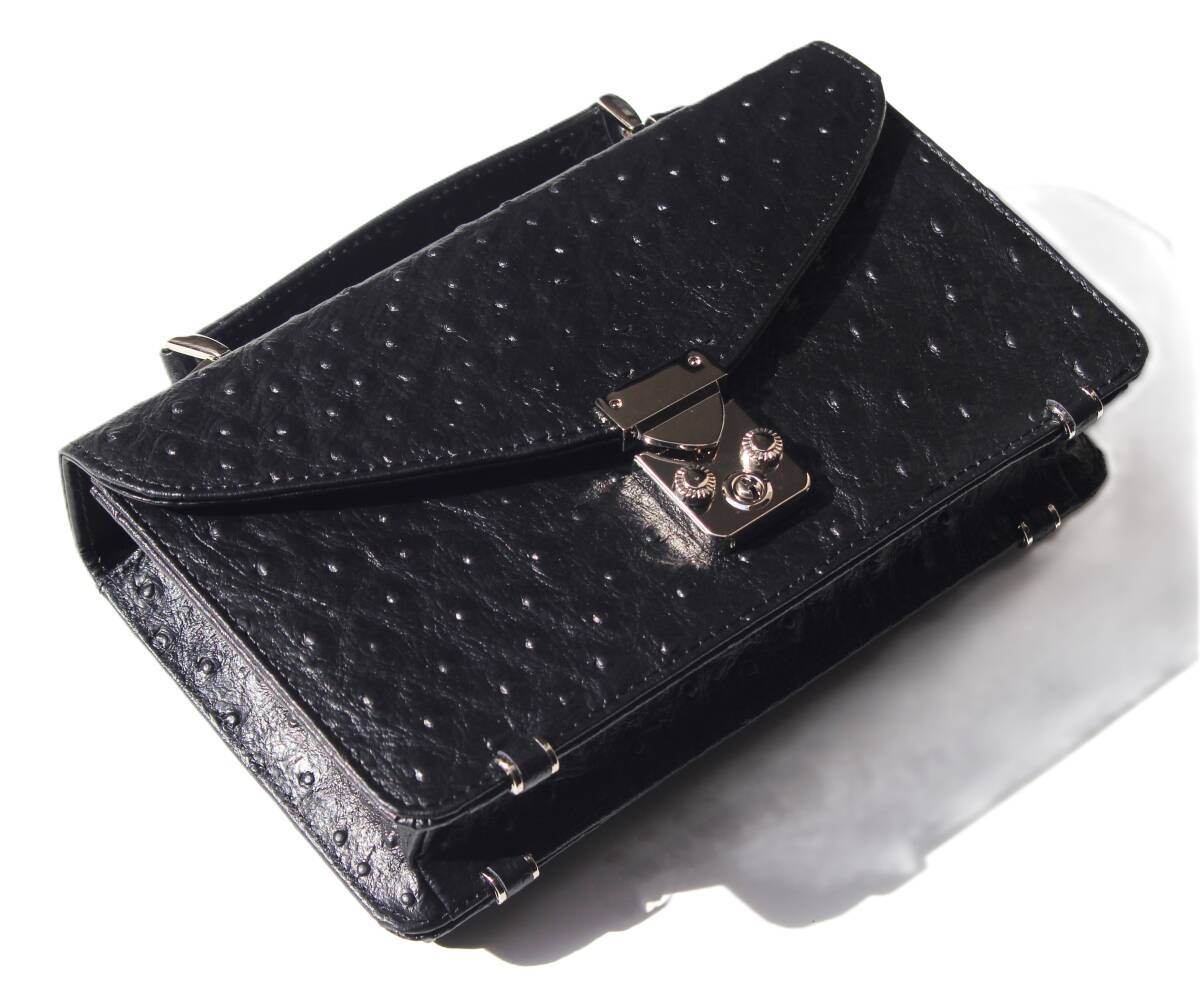 - 【新生活応援特別タイムセール】【送料込み】【期間限定】【新品】【税込み】牛革オーストリッチ型押し☆背面財布付き☆セカンドバッグ BK