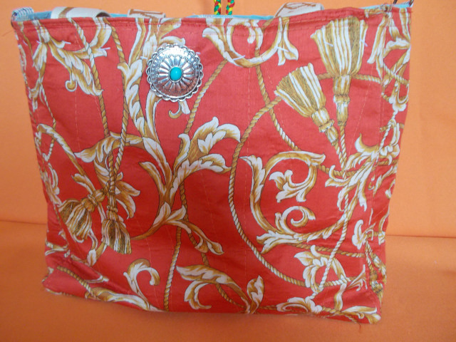 - [701]赤・スカ~フ・ロ~プデザイン★横34cmX縦29㎝★マチ-10/13㎝★持ち手⇒DCデザインテ~プ・52cm