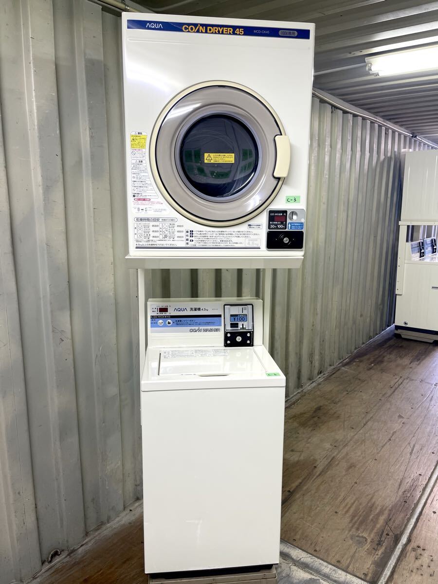 - C-2 ★☆業務用 AQUA/アクア コインランドリー 洗濯機: MCW-C45/乾燥機:MCD-CK45専用架台付 金額設定可能
