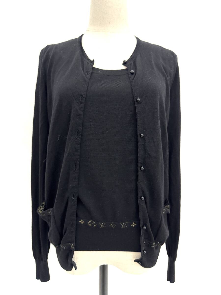 - 7I2803【本物保証】ルイヴィトン アンサンブル カーディガン ベスト ノースリーブ ニット トップス モノグラム ブラック LOUIS VUITTON