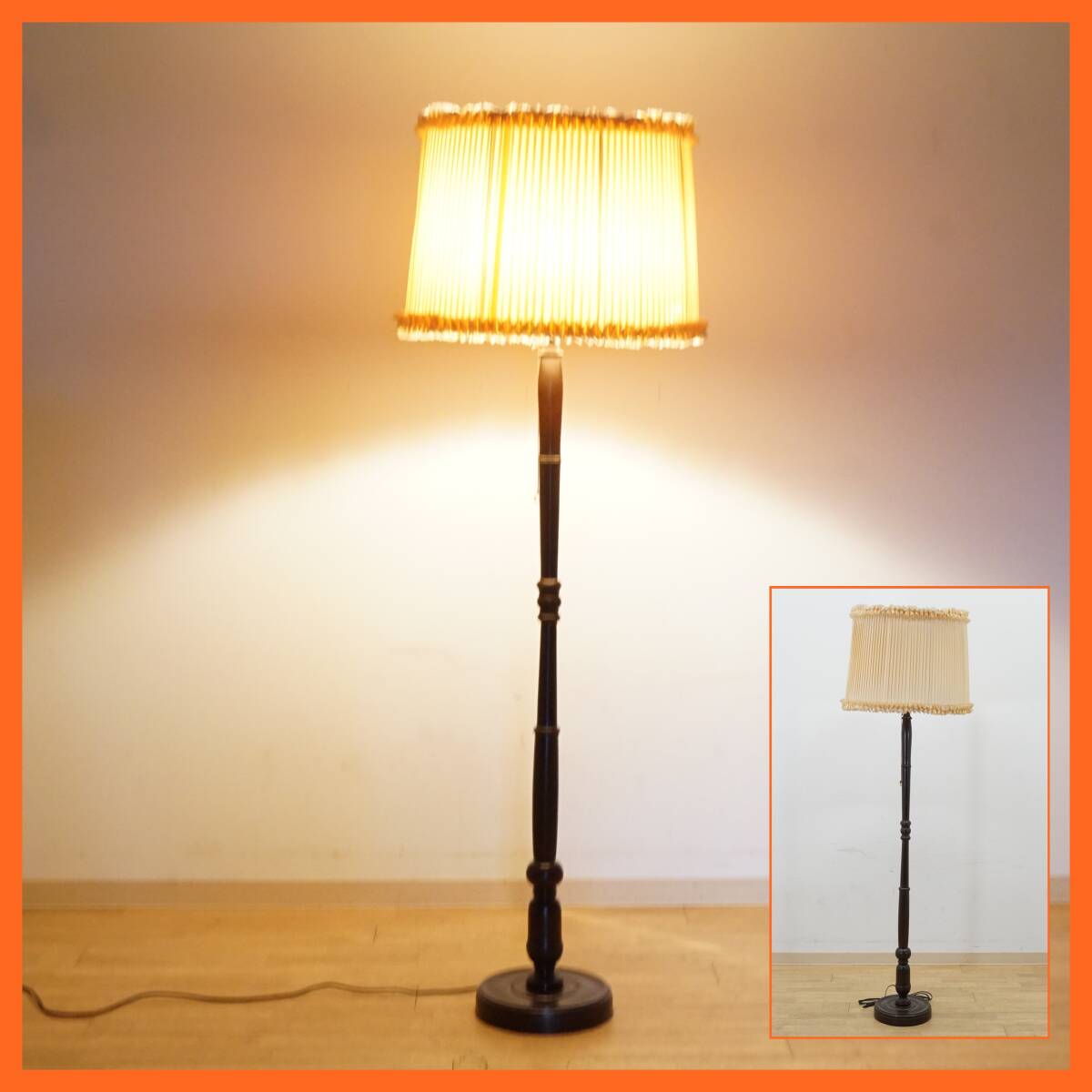 > 前ダ:【昭和レトロ】フロアスタンド 布シェード ライト 高さ約158.5㎝ スタンドランプ アンティーク調 照明 インテリア ★送料無料★