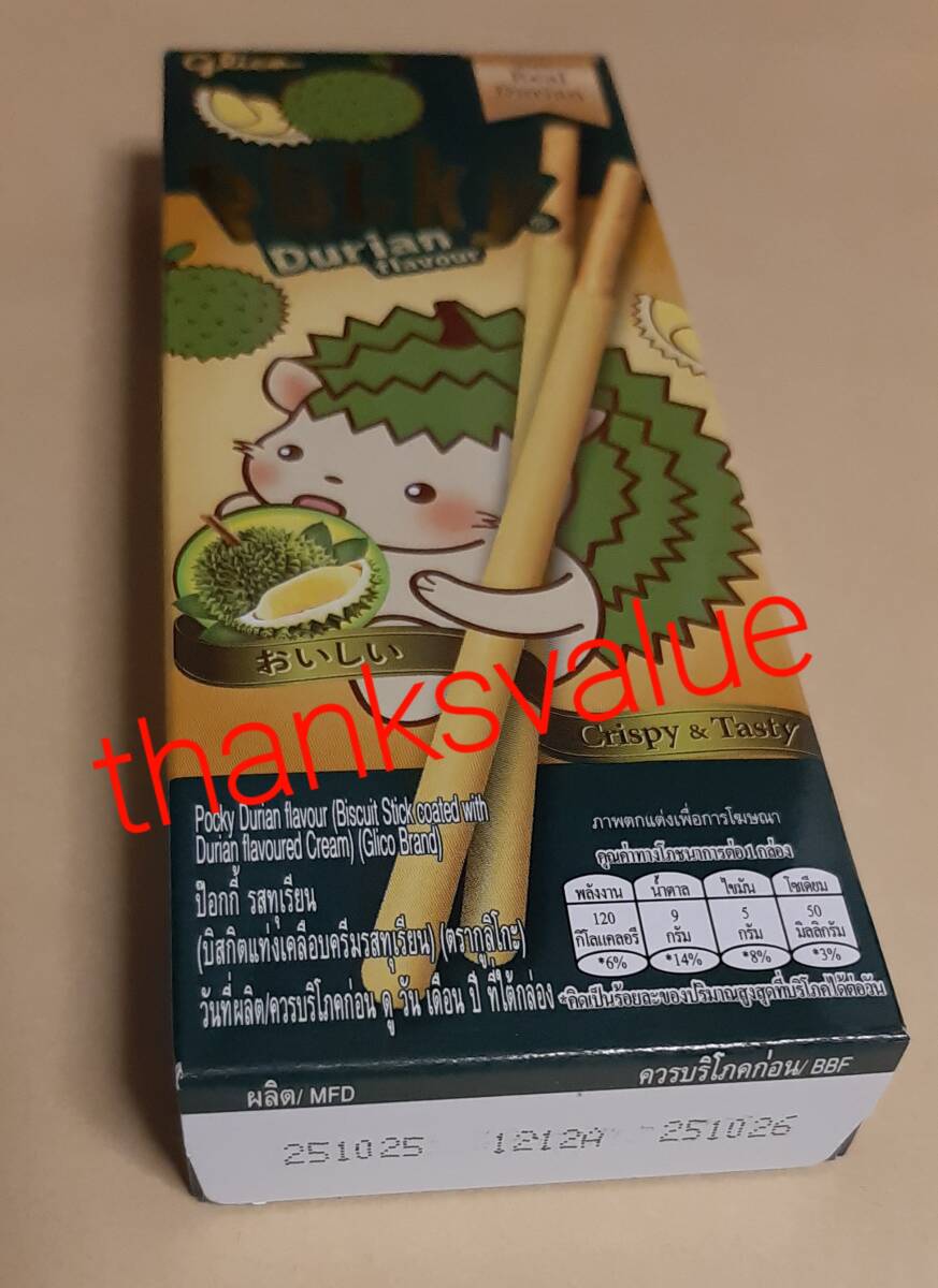 > タイ ポッキー(Pocky) ドリアン(Durian) 1箱(25g) 賞味期限26年10月25日 グリコ(glico)◆バンコク 土産 プリッツ同梱可 お菓子 新品 未開封