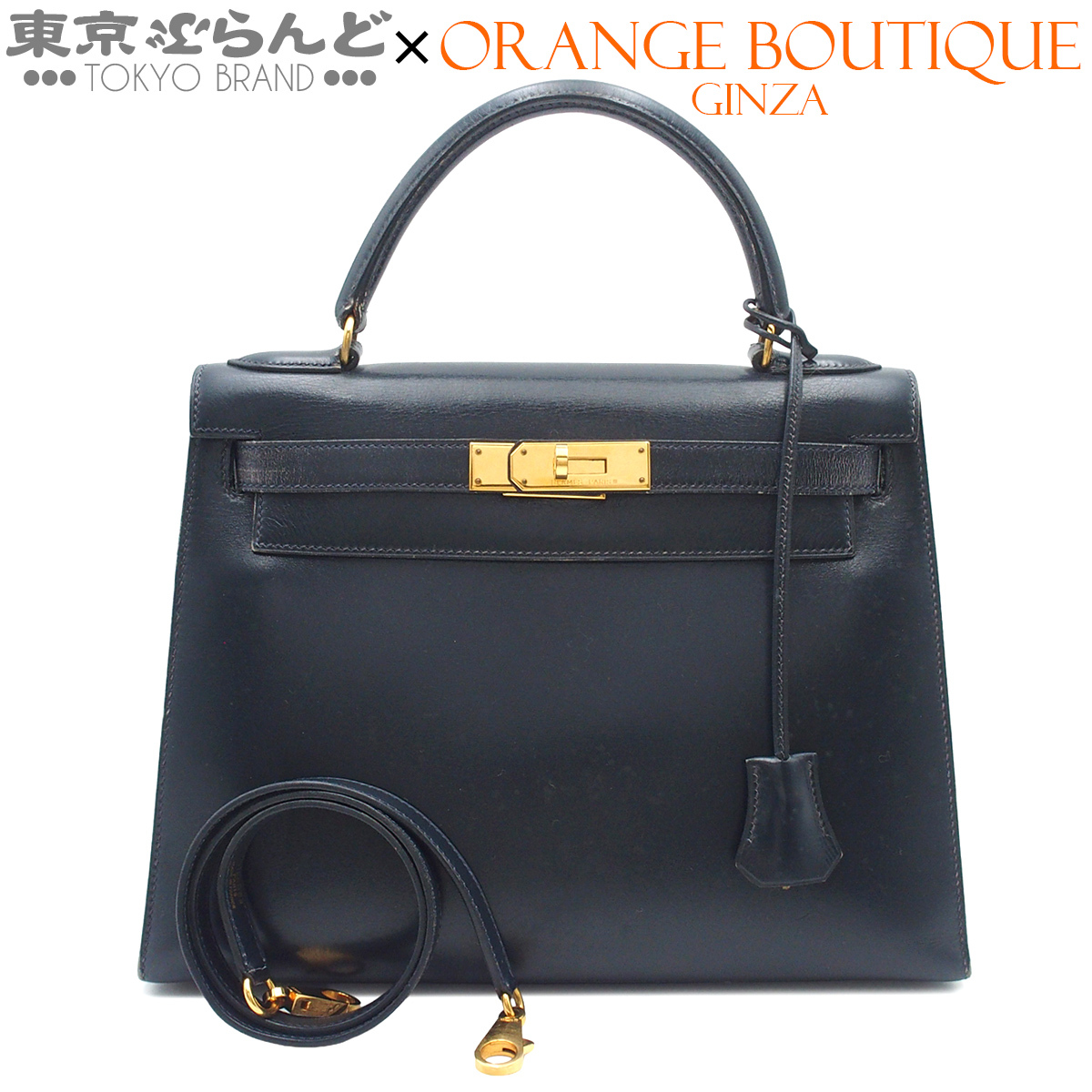 > 101845918 エルメス ケリー28 〇U刻印 ブルーインディゴ G金具 ボックスカーフ 外縫 2WAY ショルダーバッグ ハンドバッグ ヴィンテージ