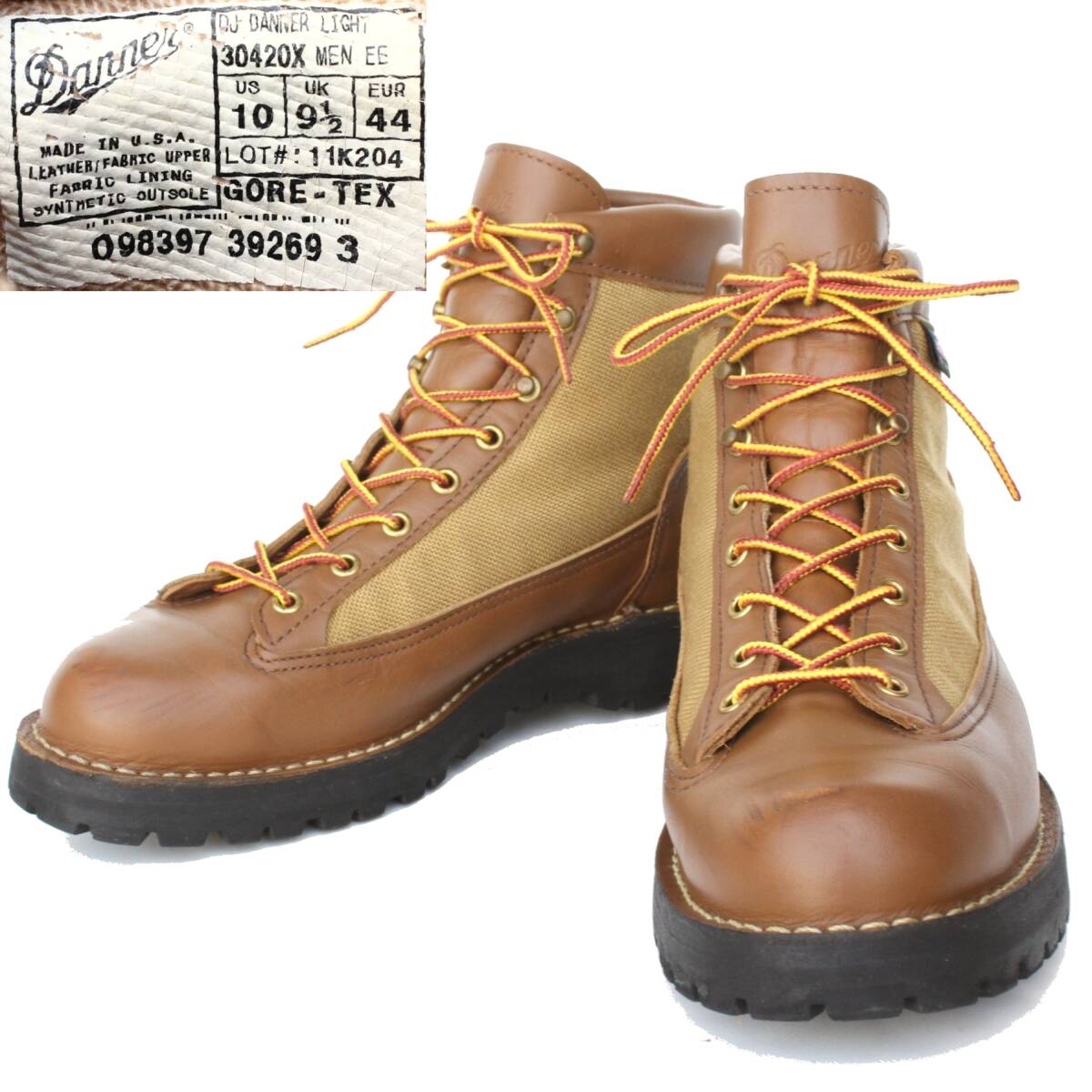 > (51549)美品良品DannerダナージャパンMADE IN USA 30420Xダナーライト10EE 10インチ約28cm(カーキ ブラウン白タグ アメリカ製ゴアテックス)