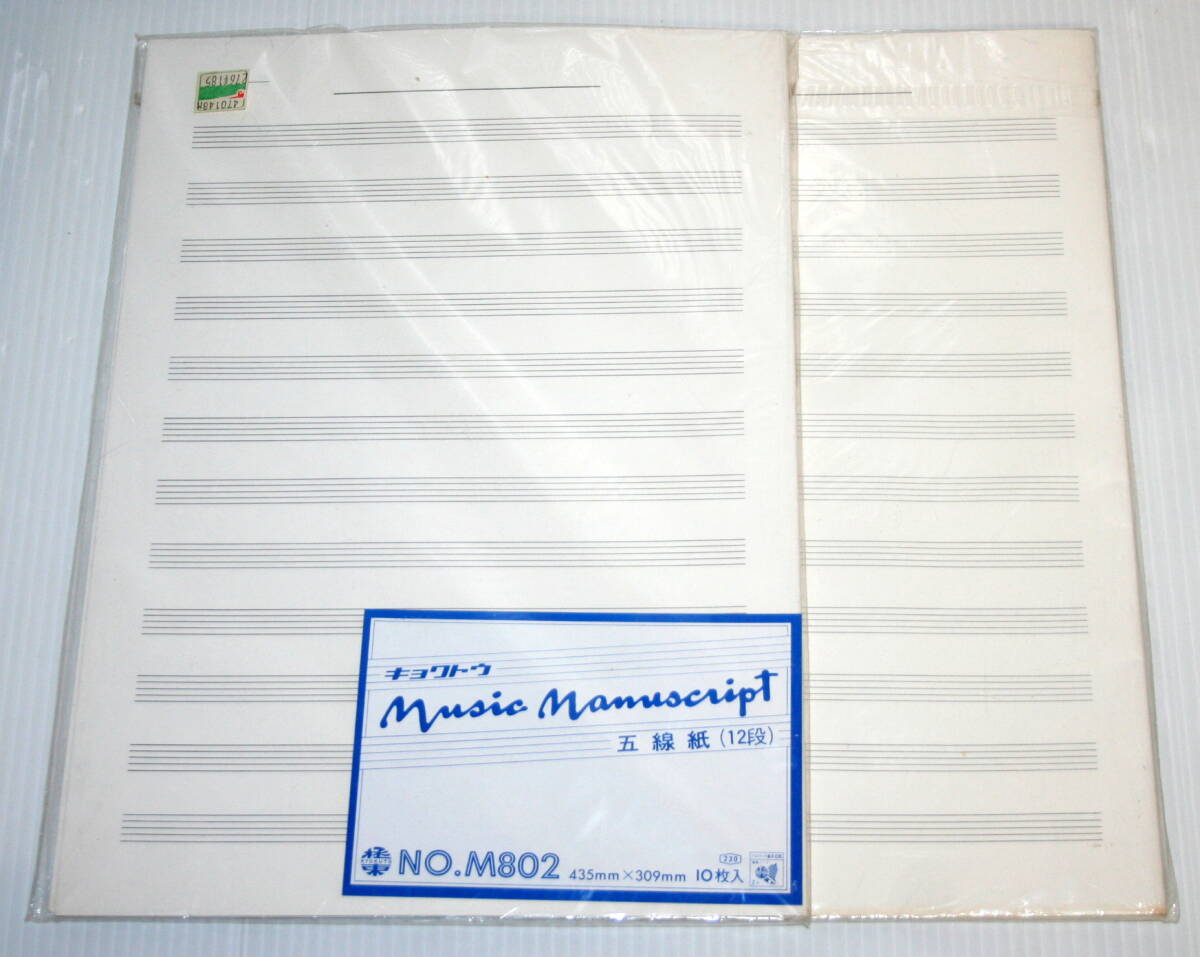 > 【未使用】 極東 キョクトウ 五線紙(12段)music manuscript 435mm×309mm NO.M802 18枚 / 1ページ A4 サイズ