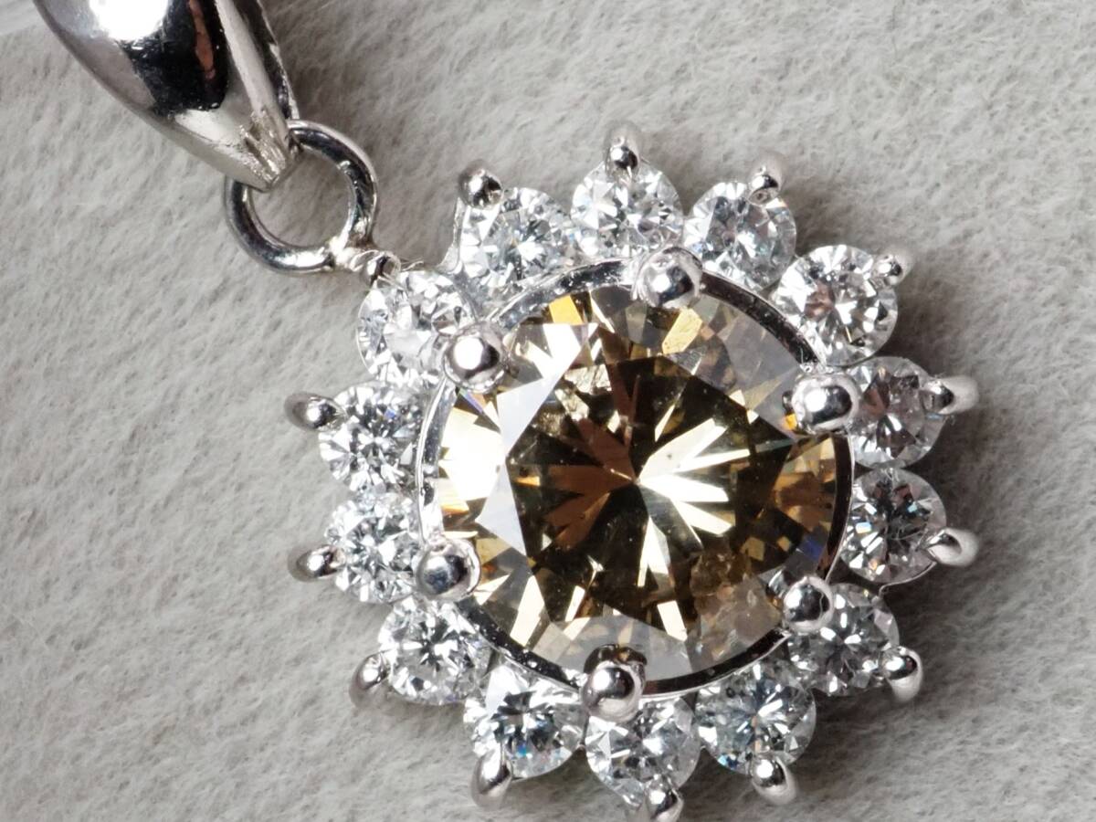 - 【9508M】Pt900 天然ダイヤモンド 大粒 1.036ct/0.44ct/3.4g ペンダントトップ