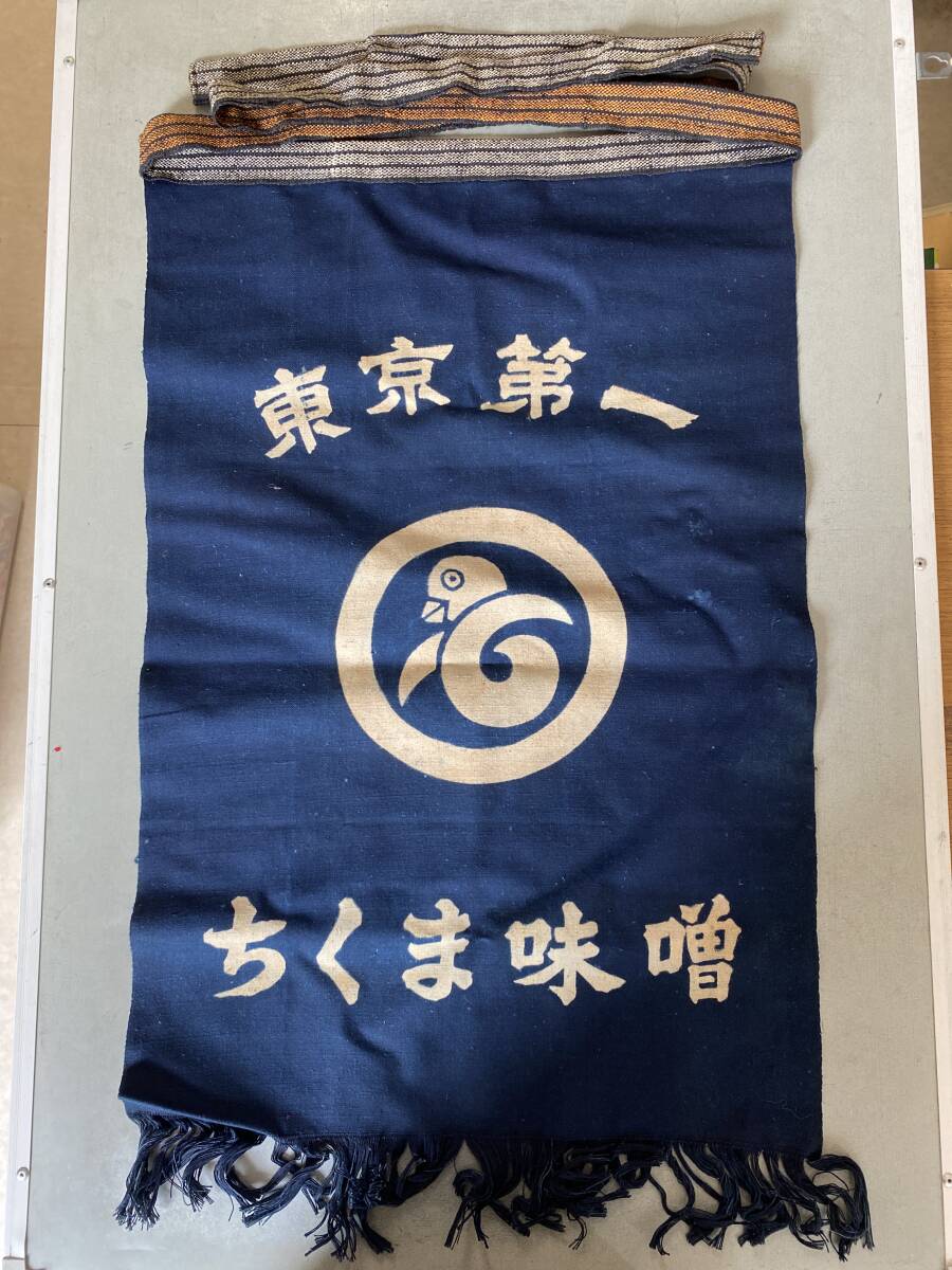- Z301 前掛け エプロン 東京第一 「ちくま味噌」リバーシブル 昭和 レトロ しみあり