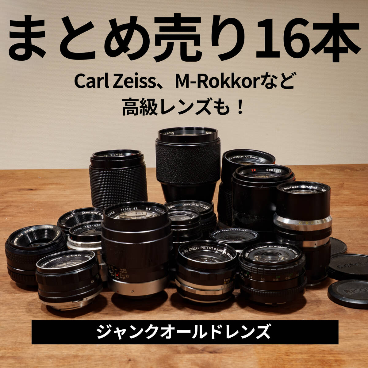 > 1円スタート!オールドレンズまとめ売り16本!Carl ZeissやM-Rokkorなど高級レンズも!ジャンクレンズ