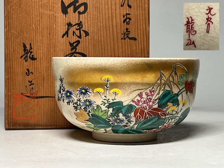- 【瑞】静山造 九谷焼 花紋 御抹茶碗 共箱