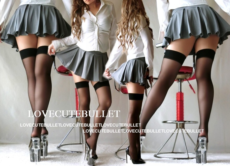 > ☆2点☆薄黒ニーハイストッキング付き☆ストレッチ美ラインsexyインパン一体型美脚プリーツマイクロミニスカート(グレー)
