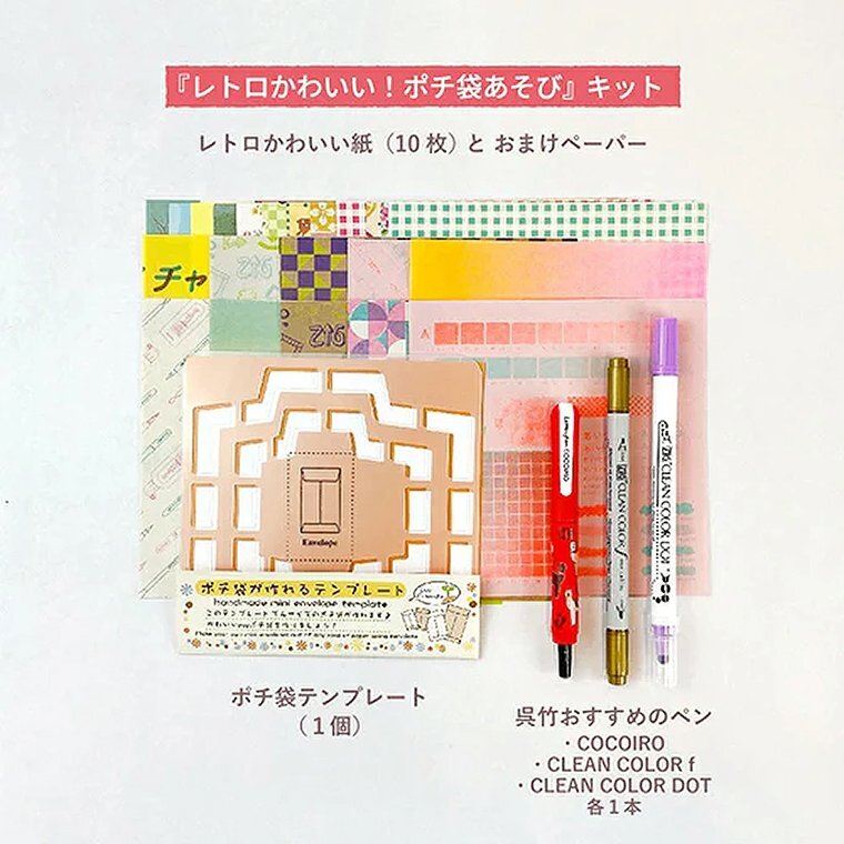 - ■●【呉竹×レトロ印刷コラボ】ものづくりで、ひといきレトロな紙で遊ぶ簡単クラフト レトロかわいい ! ポチ袋あそびキット 新品 /KUR61