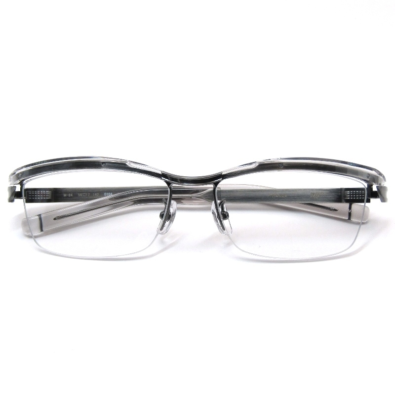 - 未使用 999.9 フォーナインズ メガネフレーム M-24 日本製 ブロウ TYPE-E ミックス 0104 クリアスモーク/アンティークシルバー 61005148