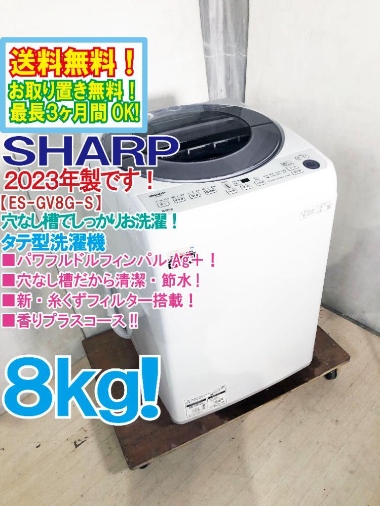 - 送料無料★2023年製★極上超美品 中古★SHARP 8.0kg 穴なし槽で清潔・節水!! 「ガンコつけおきコース」 全自動洗濯機【ES-GV8G-S】GF0M