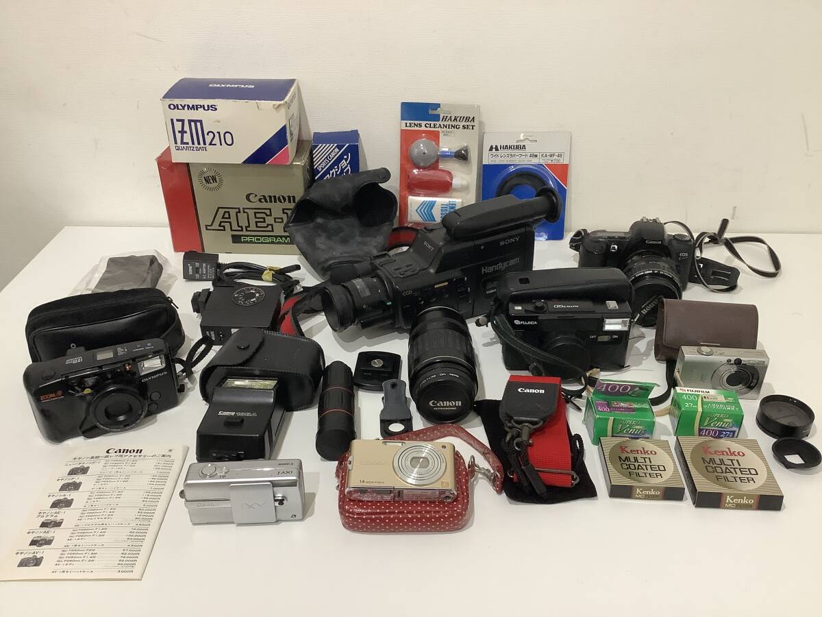 - 2604300 カメラ ビデオカメラ レンズ まとめ canon OIymPass FUJIfilm SONY SUNPAK ストロボ ジャンク キャノン オリンパス ソニー