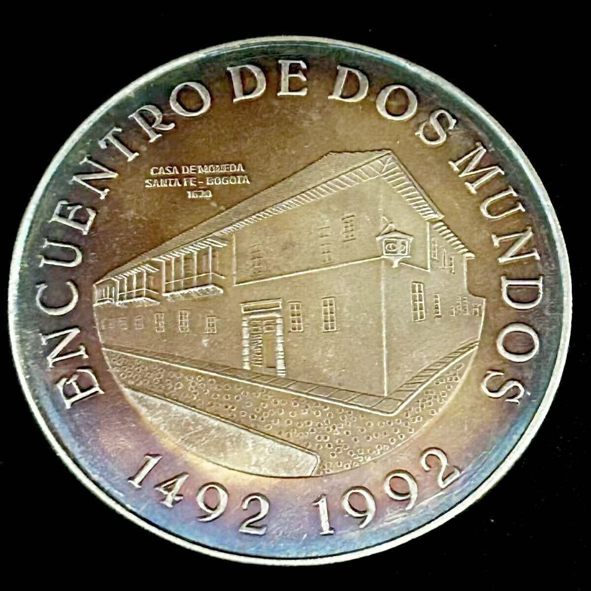 - 銀貨 1992年 コロンブス新大陸発見500周年記念 コロンビア共和国 蔵品 古銭 骨董品 貿易銀 硬貨 古銭 コイン 一円銀貨 94