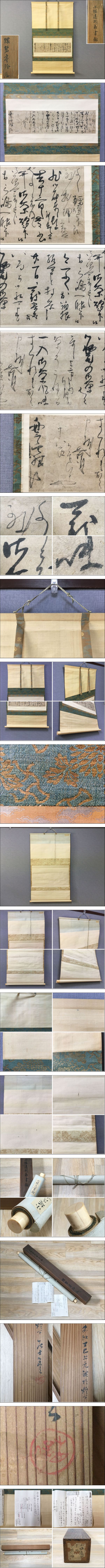 > ◆掛軸 小堀遠州 翁書翰 約109cm×約62.5cm 環碧亭蔵 消息文 書 横物 茶人 紙本 掛け軸 茶掛 古美術 説明書入り・共箱付 模写 K-5