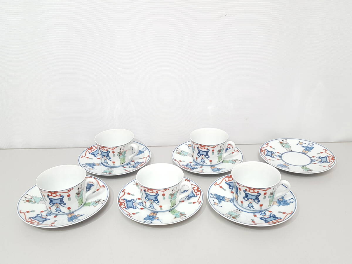 > 【初だし】今泉今右衛門 造 錦唐子絵図 カップ&ソーサー5客+ソーサー1点セット/珈琲碗皿/色鍋島/唐子遊文/06KO040901-8