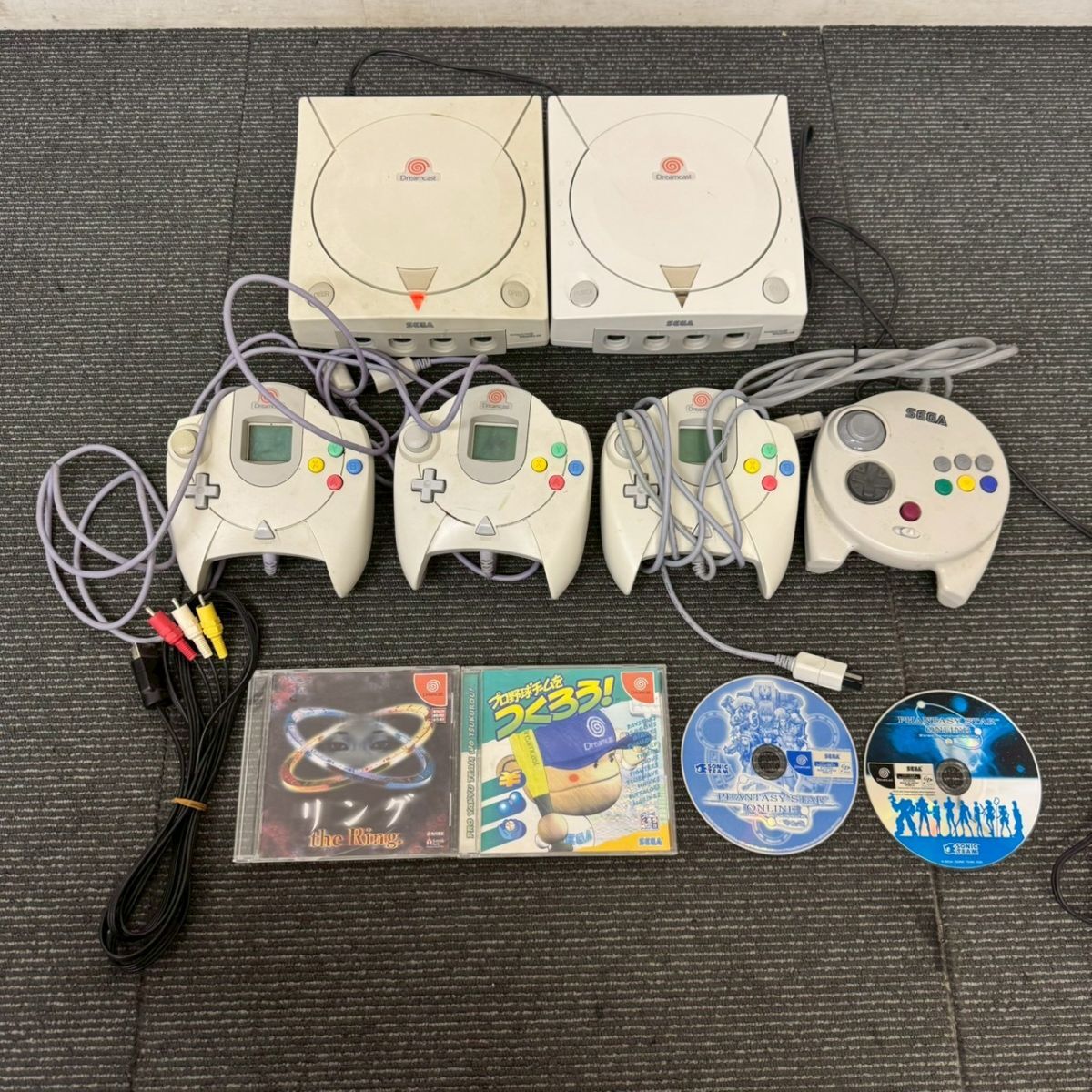 > S420-K32-6988 SEGA セガ Dreamcast ドリームキャスト HKT-3000 本体2点+コントローラー4点+ソフト4点セット リング 他 通電確認OK KA