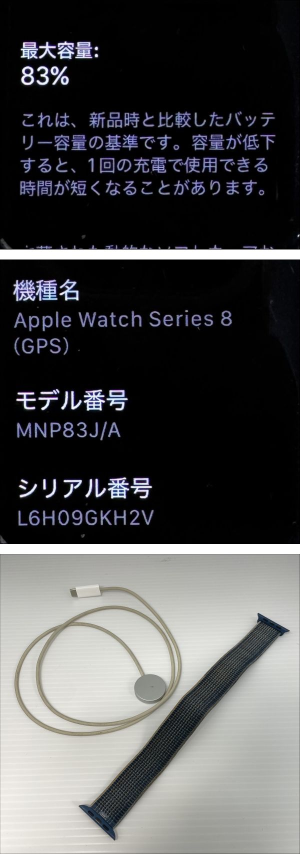 > 2603M4313 Apple アップル AppleWatch series 8 45mm GPSモデル MNP83J/A 32GB 通電確認済