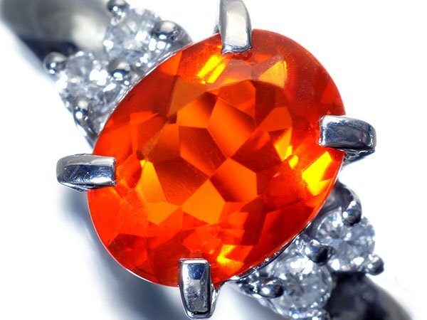 > 1円~【ジュエリー極】燃える煌き!極上天然ファイアオパール1.19ct&ダイヤモンド0.14ct 高級Pt900リング k1661mz【送料無料】